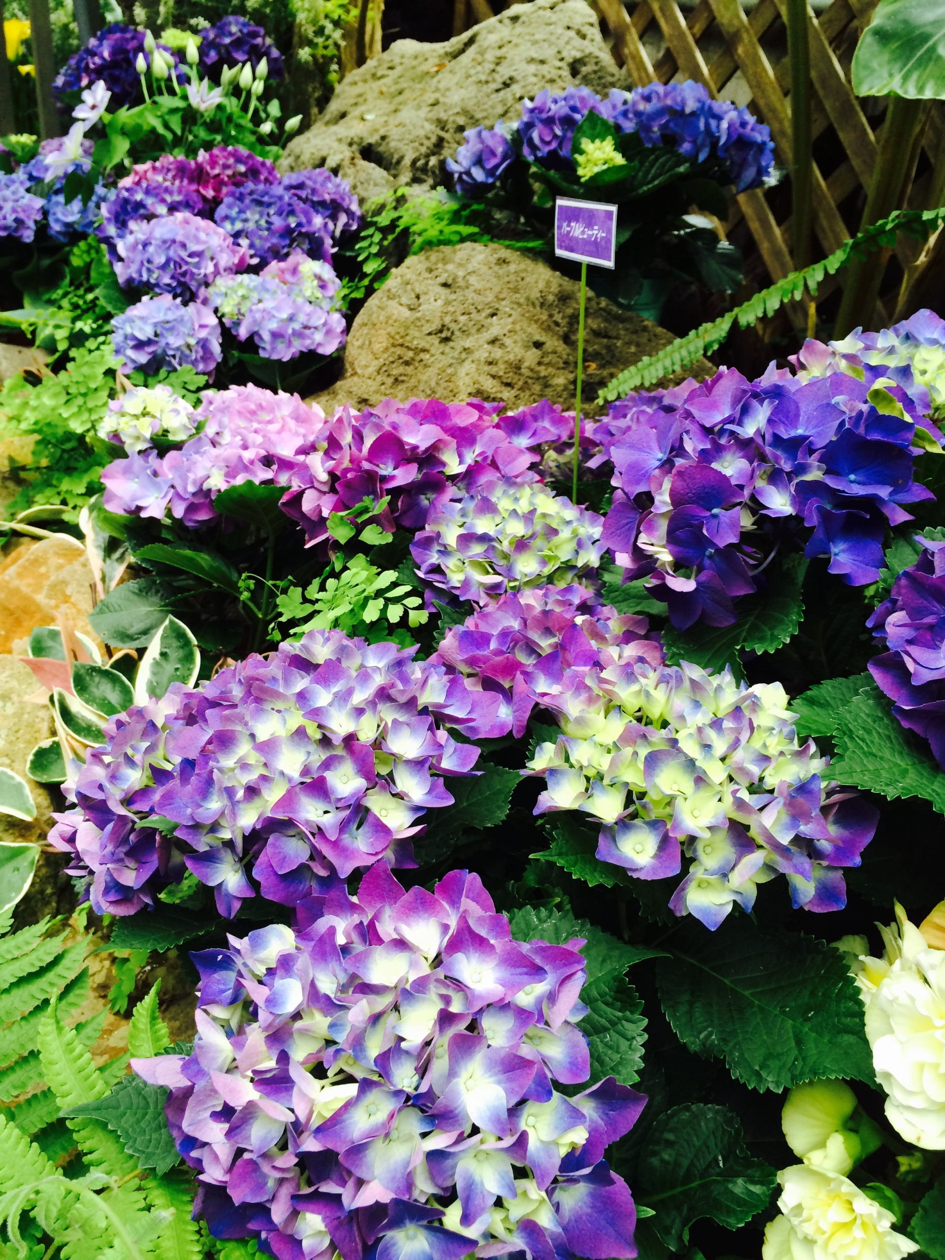 もうすっかり日中は夏の日差しに変わってきましたね!春から初夏向けのお花にそろそろ入替えシーズンです。今回は須磨離宮公園の温室内のイベント装飾についてお伝えしようと思います。今回のテーマは「アジサイ」です。自然開花はもう少し先ですが、温室で一足早くお楽しみいただけるように企画されたものです。色、形、大きさ様々な組み合わせで空間を彩ります。